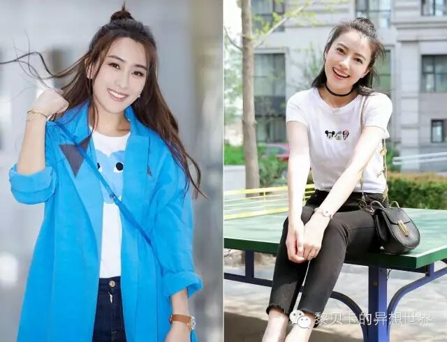 对比一下,长发飘飘的马苏扎半丸子头是不是有种古装片感?右边的圆圆同学就青春逼人~▼