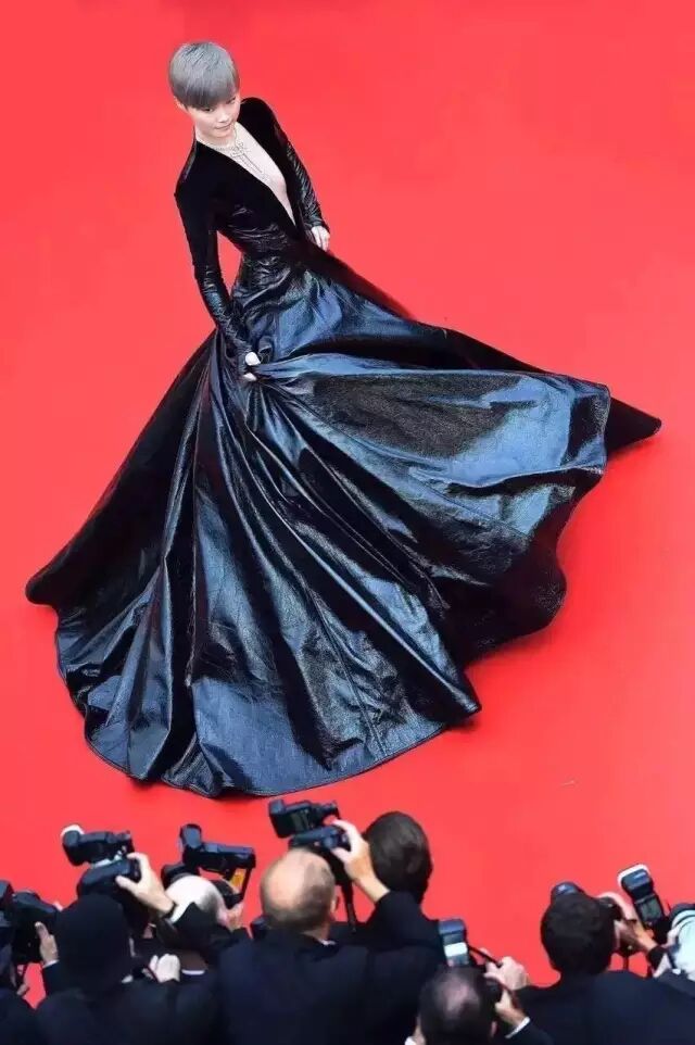 当她决定穿裙子的时候,做出的选择也是特别的~图是今年5月,李宇春以“黑天鹅”造型第四次亮相戛纳红毯。▼