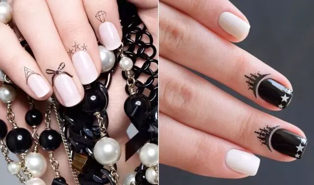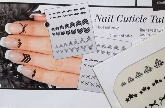 现在还很流行一种指缘纹身贴(Cuticle Tattoos),贴在指甲外面的皮肤上的,看起来更有心机。想买也不难,不但甲油品牌有出,在一些快销服装品牌的店里也能找到。▼