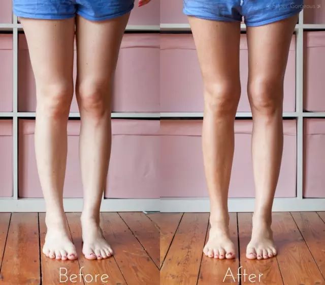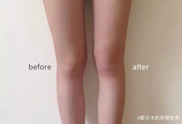 想让腿看上去更纤细,你可以在腿部正面沿着骨头直线扫一层身体闪粉,把它当身体修容粉用。是不是很机智~