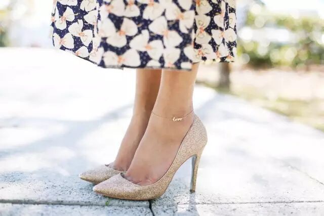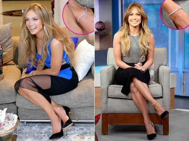 很多明星穿尖头鞋喜欢搭配一条脚链,让脚部更有看点,比如Jennifer Lopez。▼