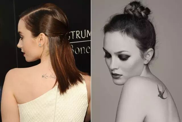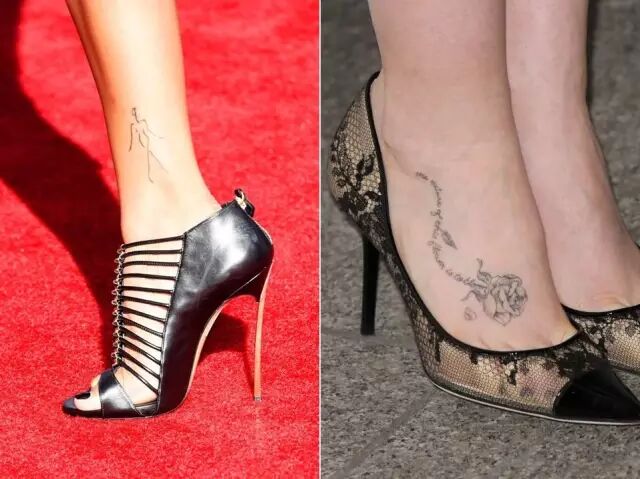 在脚踝或脚面画个纹身也很特别。左为超模Chanel Iman的纹身,好可爱;右边的玫瑰纹身是Lily Collins的。▼