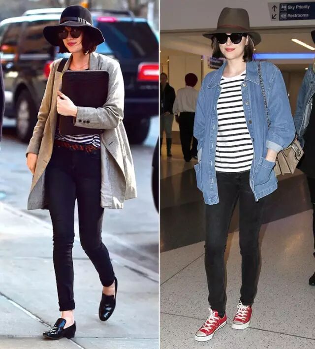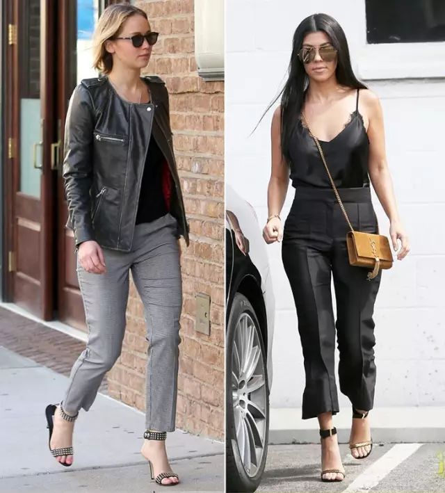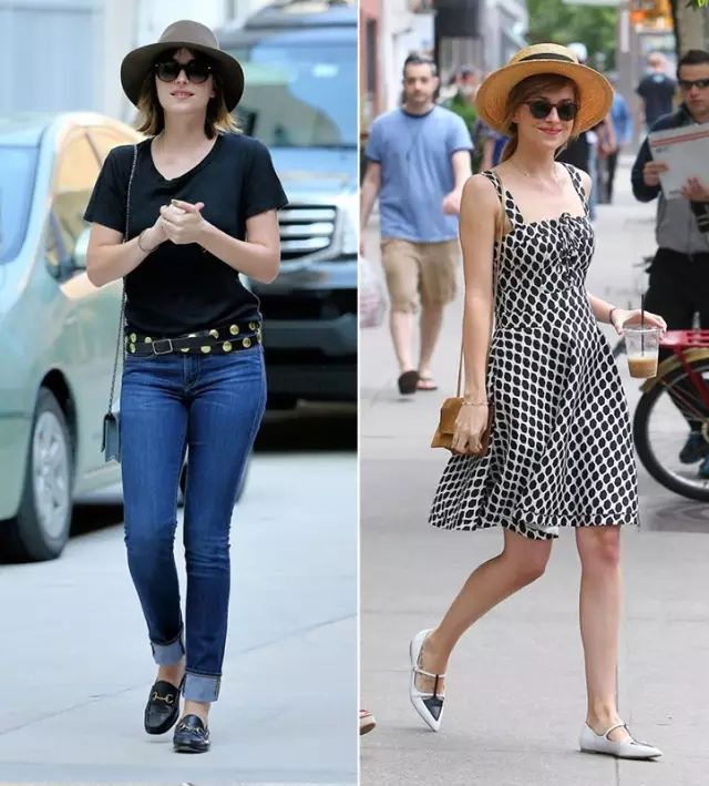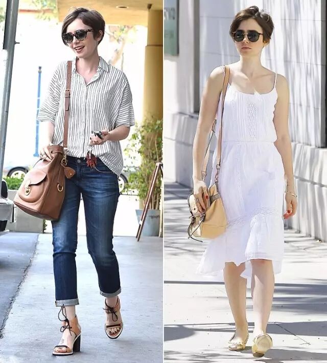 小腿粗的同学也很适合穿八九分的铅笔裤,裤脚离小腿肚不远,反而会显得腿很直。Lily Collins小腿就挺粗的,穿八九分的裤子比穿裙子更能遮肉。对比一下▼