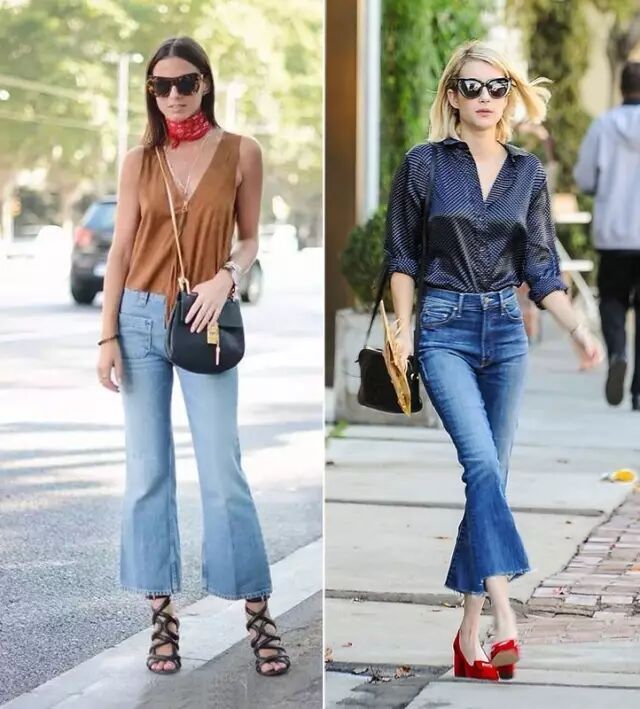 其实很多裤子都对腿型都有一定要求,而喇叭裤对小腿粗星人来说简直是天使。宽松的喇叭裤筒可以将小腿粗的缺点掩饰起来,在视觉上还有拉长腿形的效果。▼