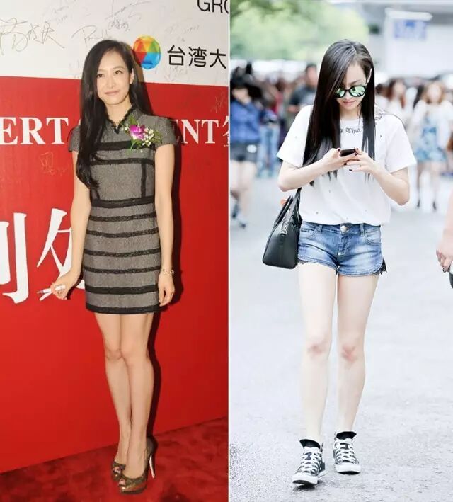 水果姐这两张,差别也很明显。正好在小腿肚上方的裙长,最容易暴露小腿粗的缺点。▼