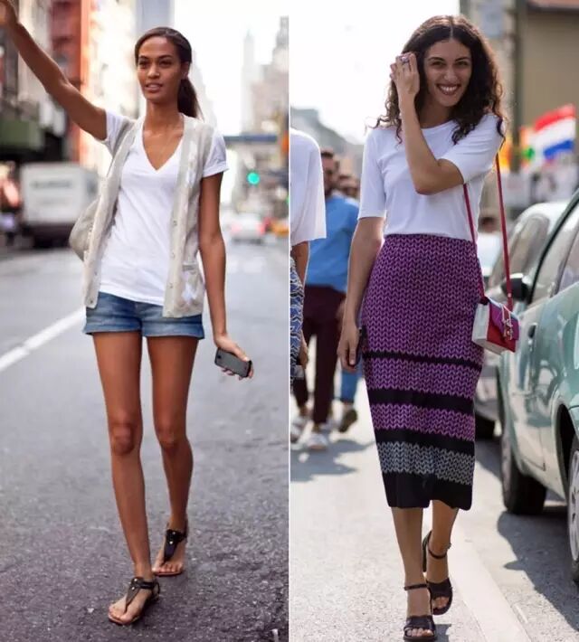 白T恤,很多人的标配是牛仔短裤,不妨换成印花裙,跟路人一下子区分开来。▼
