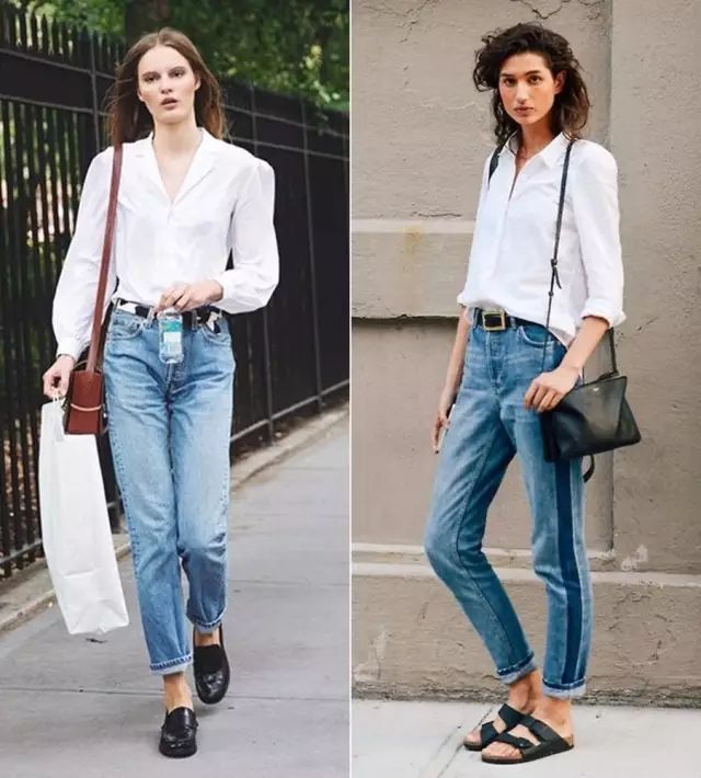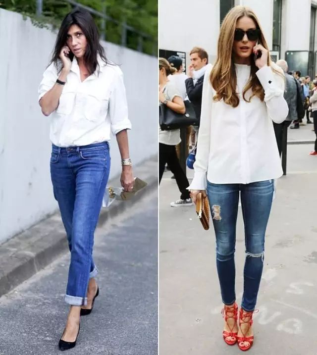 首先是挑面料,不同面料之间的区别非常明显。以衬衫为例,棉质的跟麻质的气质就差很远。麻质衬衫更文艺更森女,面料偏软,也容易皱,很容易显得人没精神,如左图。而棉质衬衫则更干练更帅气,面料更硬挺,看起来也更整洁,如右图。▼