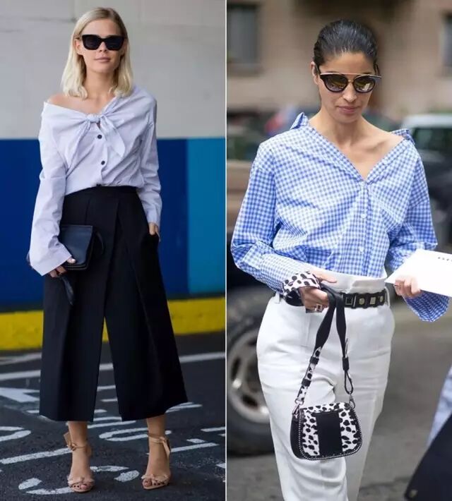 像大热的露肩装,也可以用衬衫轻松改造而来。▼