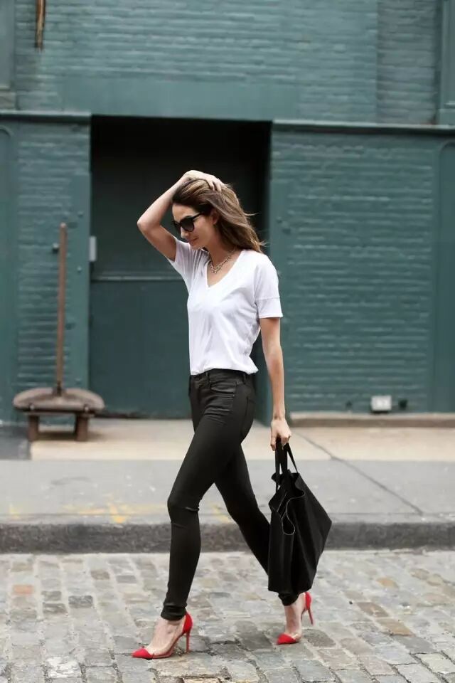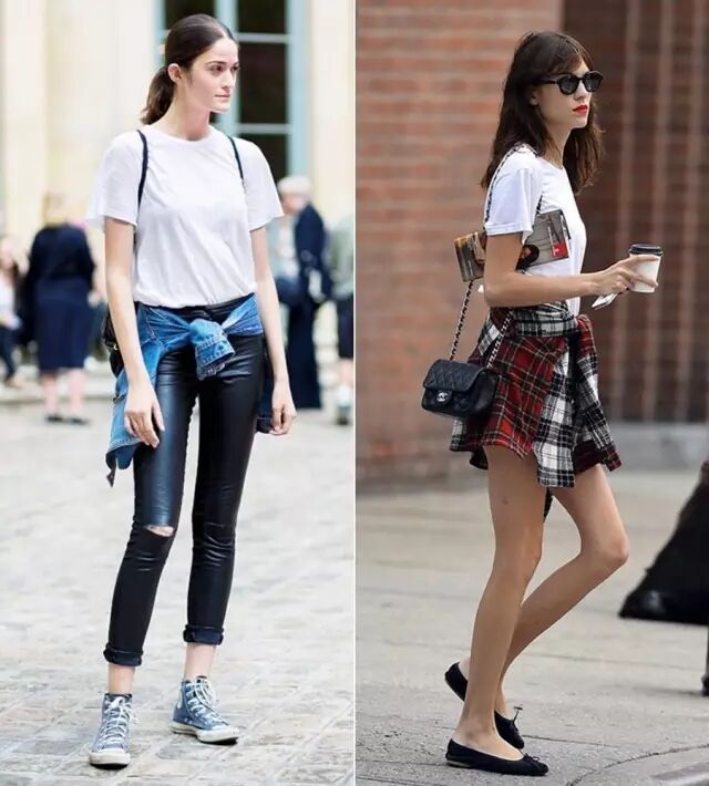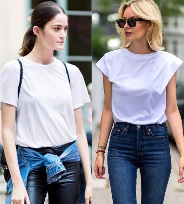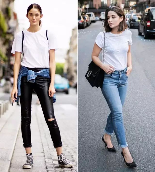 就以白T恤的领口为例吧,小圆领会显得胸大、也容易凸显肩宽;V领显脖子长,但会有点像内衣;大U领最适合内搭,但最好选宽松一点的……倒不是说哪种更好,关键是要选到适合自己的。▼