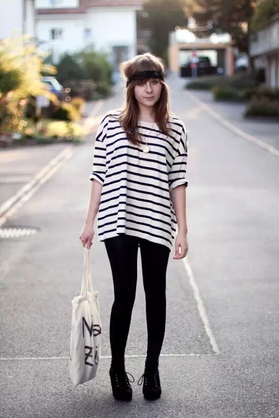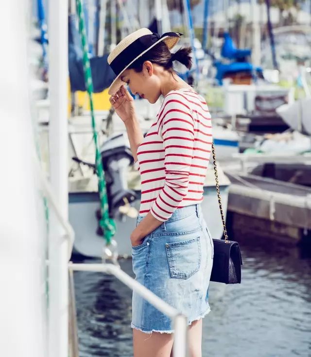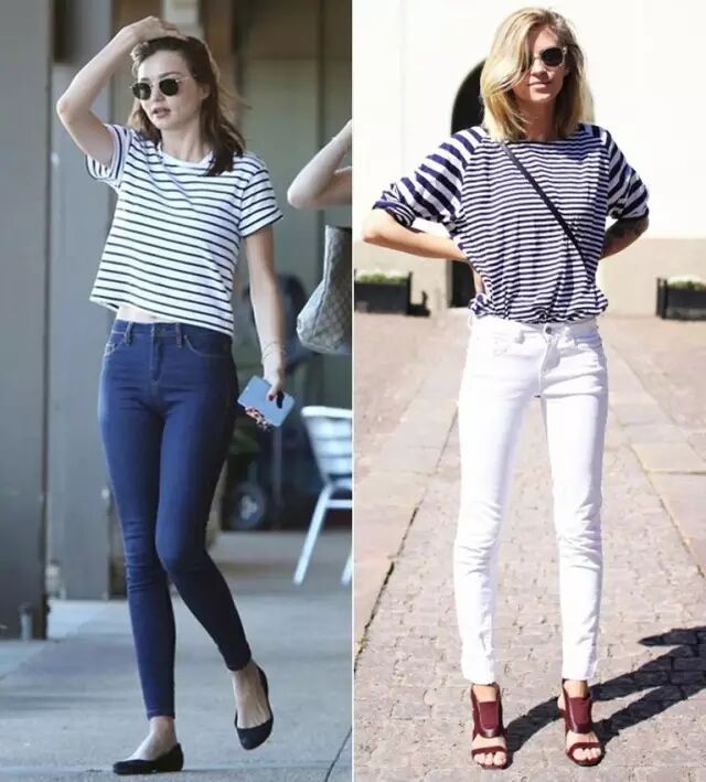 还有条纹T恤,很多人都是搭配蓝色牛仔裤,试一下搭白色牛仔裤,清爽很多。▼