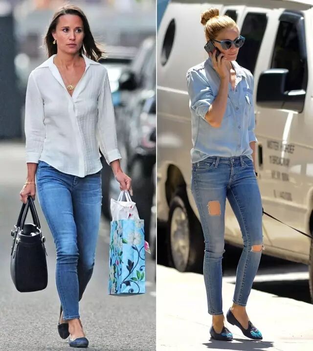 鞋子的款式和颜色对整体影响都很大,对比一下,Olivia这身是不是更让人印象深刻?▼