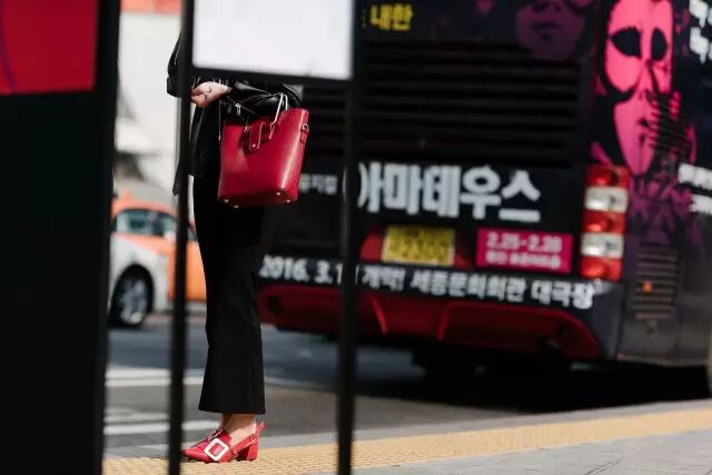 包包也是同样的道理。如果鞋子不突出,就靠包取胜吧。这款香奈儿红色包包非常亮眼。▼