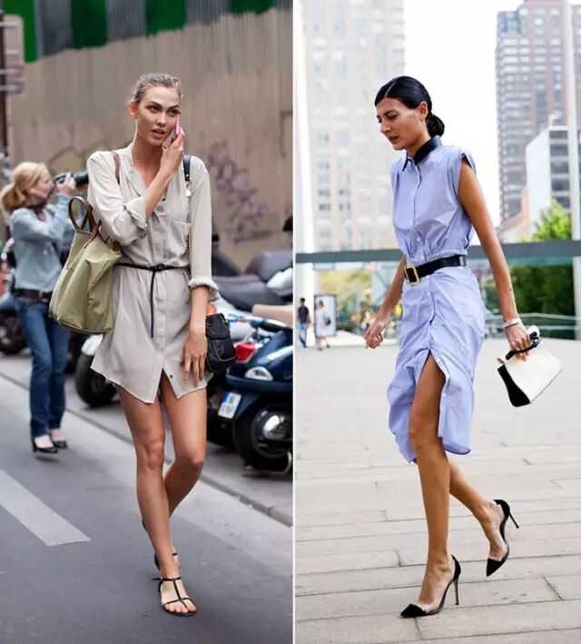 如果觉得衬衫裙不能突出身材曲线,选择有腰带的款式也不错,还能让整体多点装饰。▼