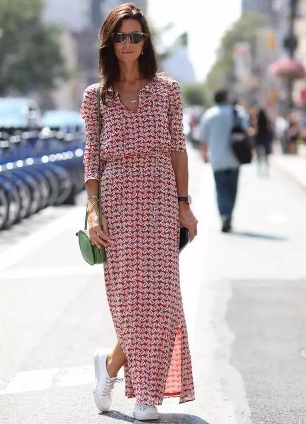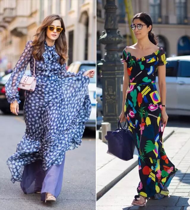 连衣裙的领子也很关键,尤其是连衣长裙,搭配V领、一字领等大领口看起来会更清爽。对比一下。▼