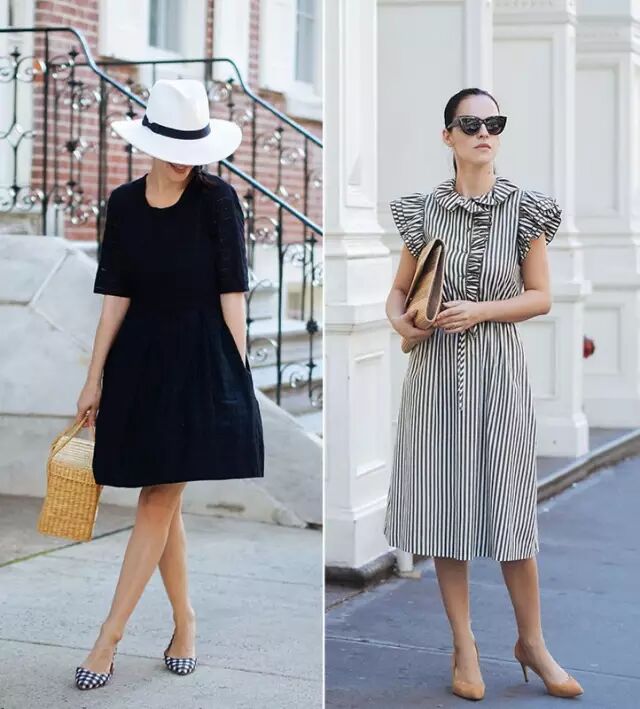 如果选择了中袖,裙摆不宜太长,否则夏天不够清爽。像下面这样的款式就蛮适合微胖姑娘。▼