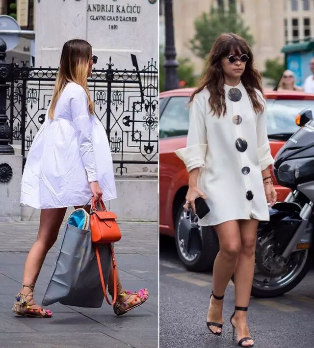 在H型里面,简单经典的衬衫裙,集利落帅气衬衫和优雅裙装为一体,非常好穿不挑人。不仅穿上任意搭配就能轻松出街,宽松的剪裁遮起肉来也是毫不费力。▼