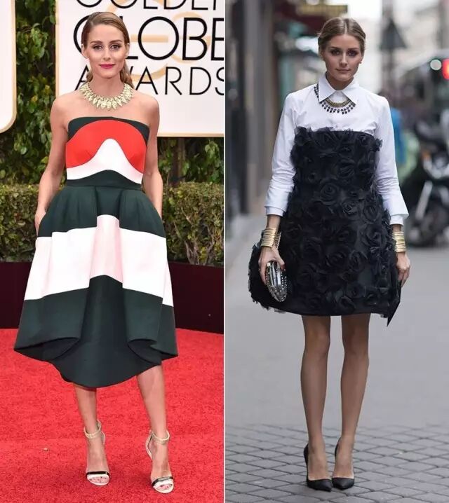 X型不但能凸显细腰,散开的裙摆还可以弱化肩部线条,很适合肩宽的妹子。不过宽肩妹请注意,左边才是你们的天使,右边反而会更凸显你的肩~▼