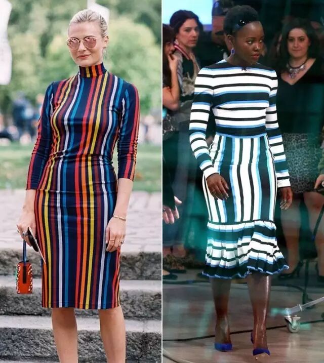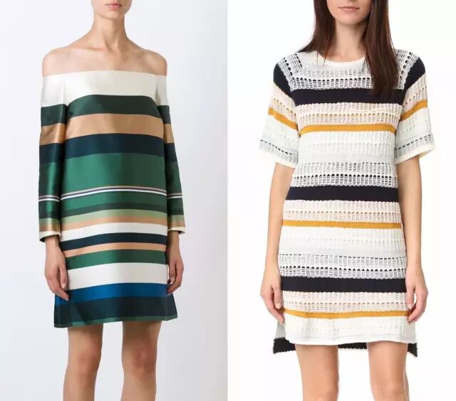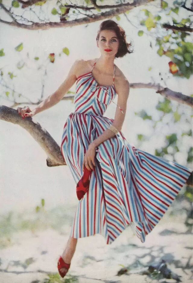 最后就是彩条纹连衣裙了。和其他单品相比,彩条纹连衣裙的复古味会更浓,却又不容易过时,现在看依然时髦。▼