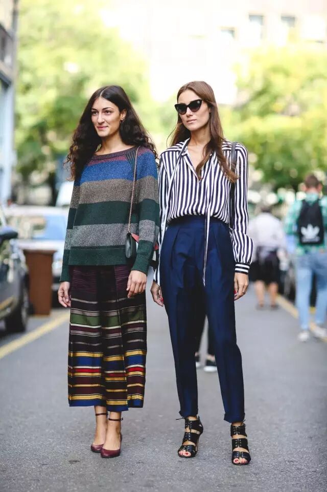 更时髦大胆一点,就用“条纹搭条纹”这招。▼