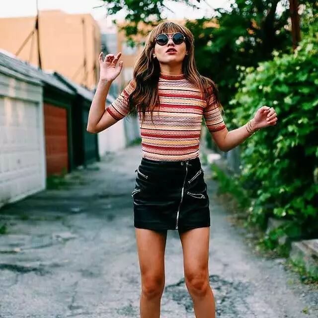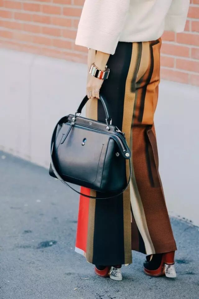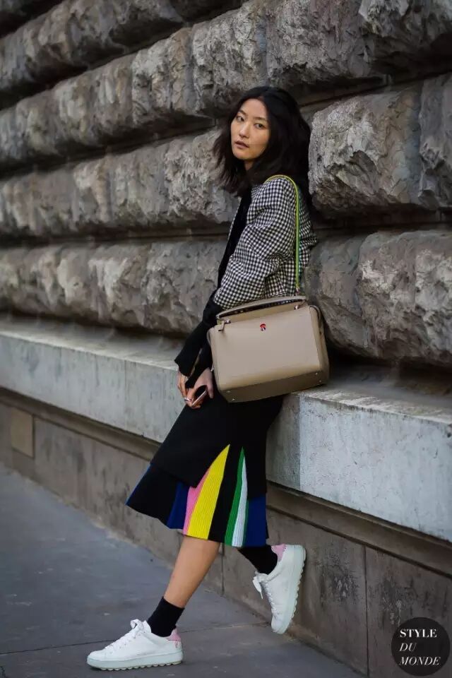 彩条纹的半身裙也是自带光芒的单品,哪怕只是露出一点点,也是十分出彩。▼