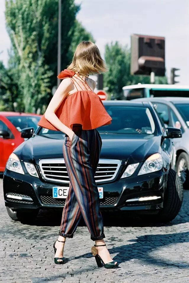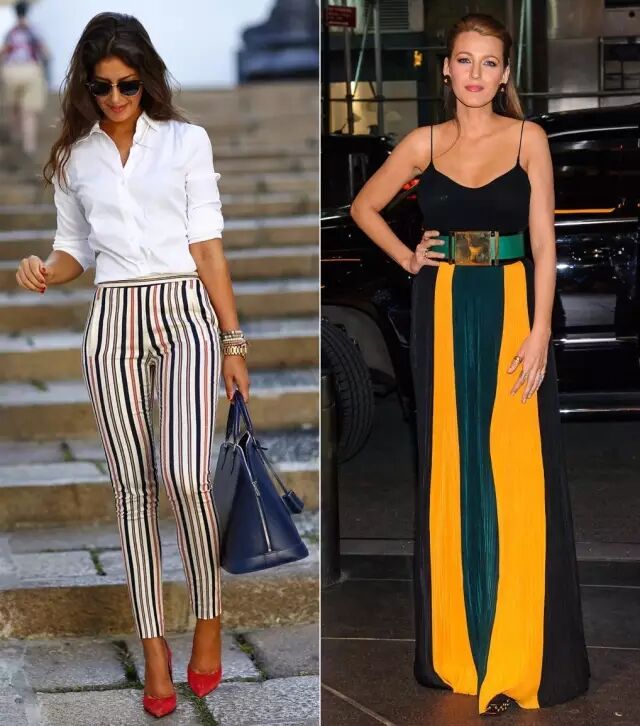 相比之下,过于紧身的彩条纹裤子以及条纹过宽的的彩条纹裤裙就没那么讨喜了,慎选。▼