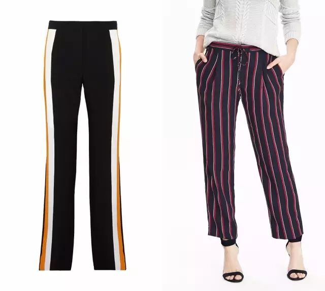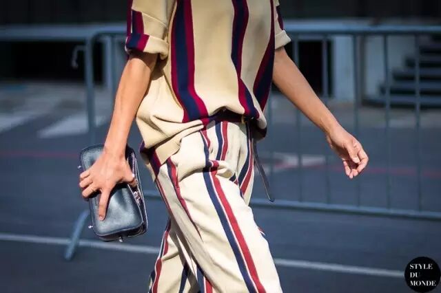 也有很多彩条纹的套装可以买到,上衣 阔腿裤的款式,即使穿一身也不会俗气。▼