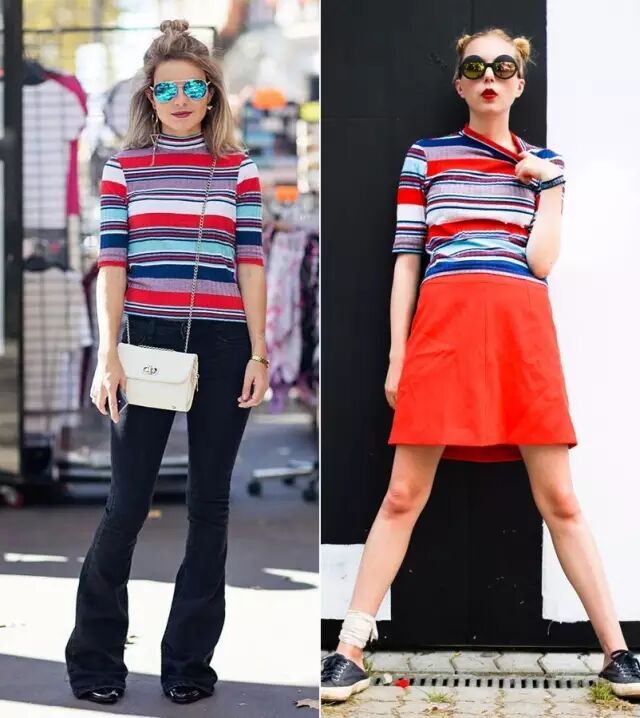 除了黑白条纹,红白、蓝白、黄白、绿白等两色条纹一直都很经典,而且也非常上镜。▼
