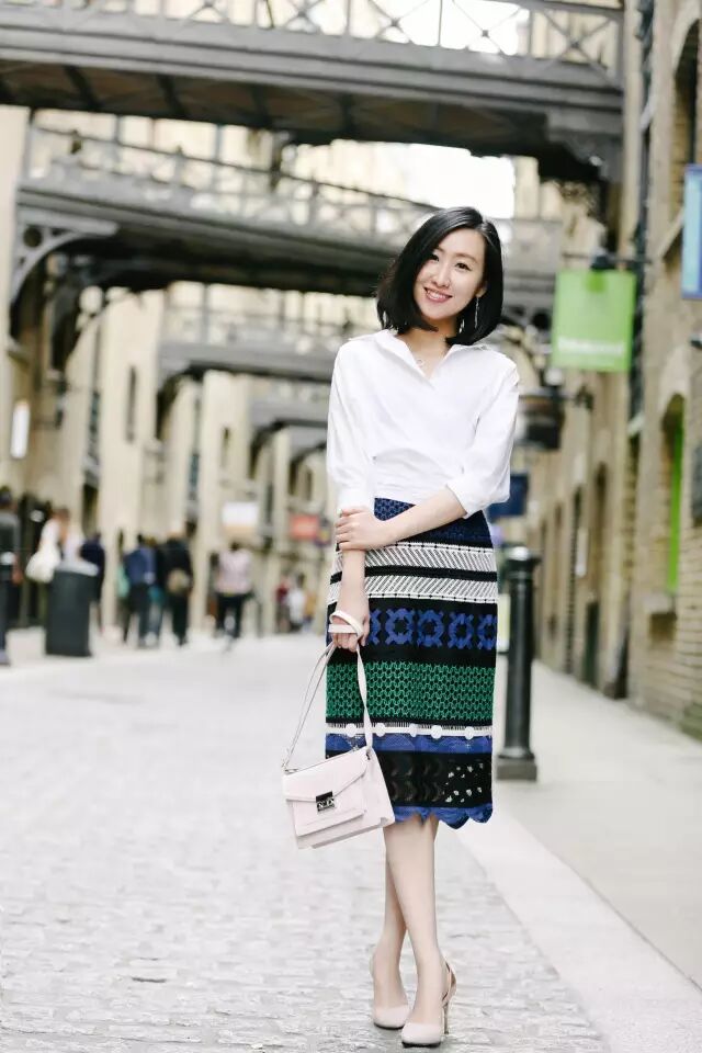 下装换成斯文的迷笛裙,就是时髦上班装▼