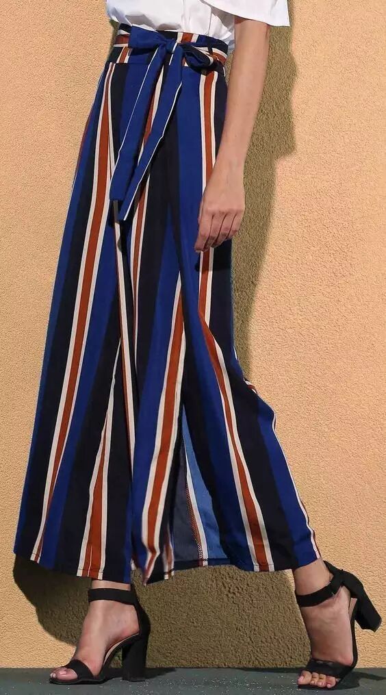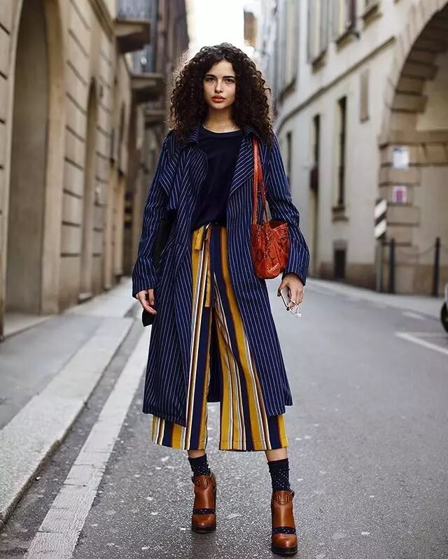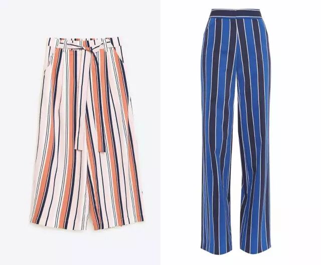 这两年大热的阔腿裤,都入手了吗?我自己已经买了好几条。想买一条更特别一点的,不妨考虑彩色条纹款。