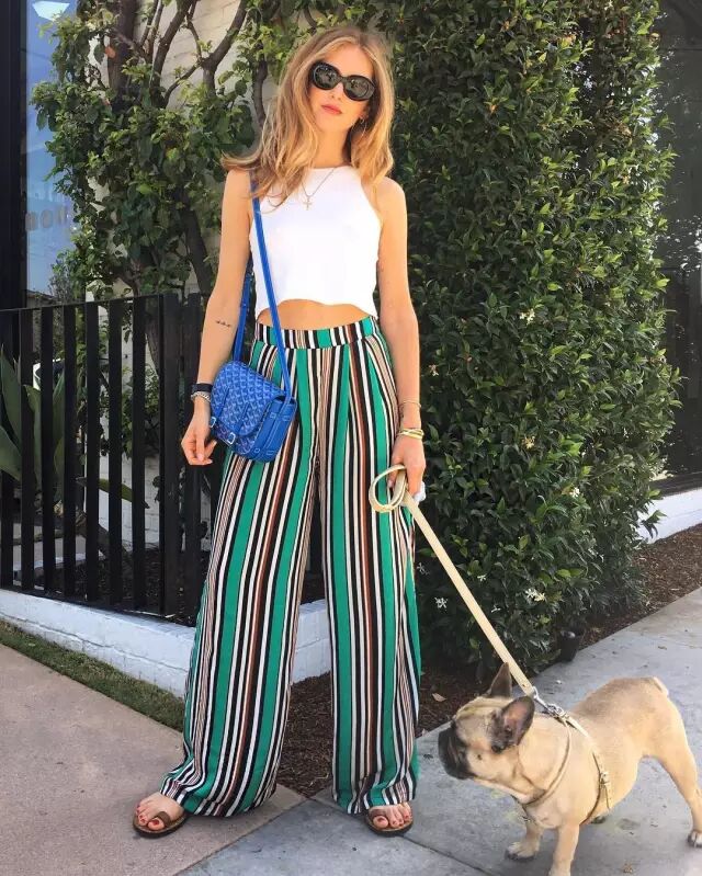 彩条纹的阔腿裤随便搭配基本款的白T恤白上衣白背心,都清爽又时髦。▼