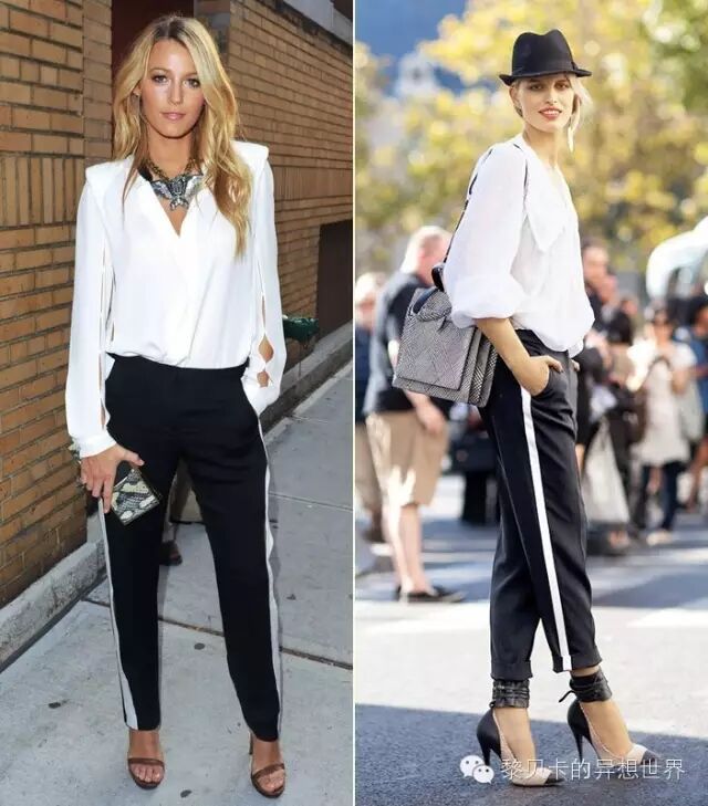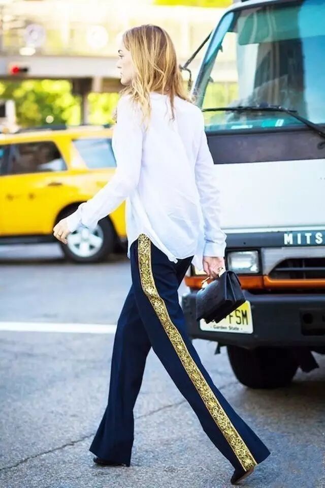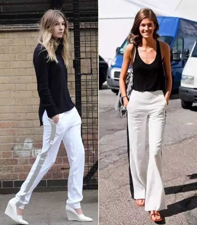 想想为什么这种侧条纹裤子能承担祖国花朵的日常呢?当然是和它的风格有关,介于正式和休闲之间,既不会太严肃又不会太散漫。只要搭对了单品,它完全可以胜任各种场合。