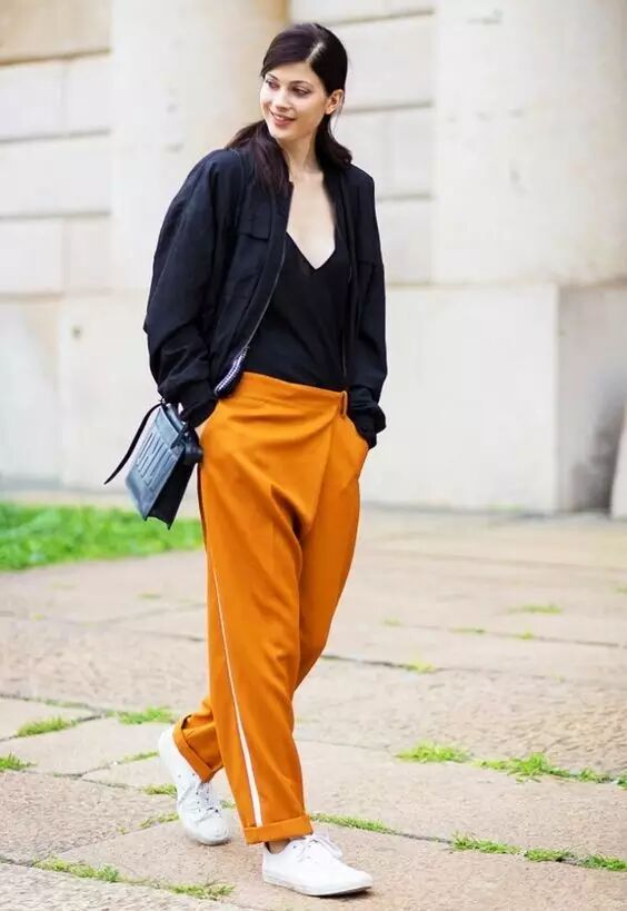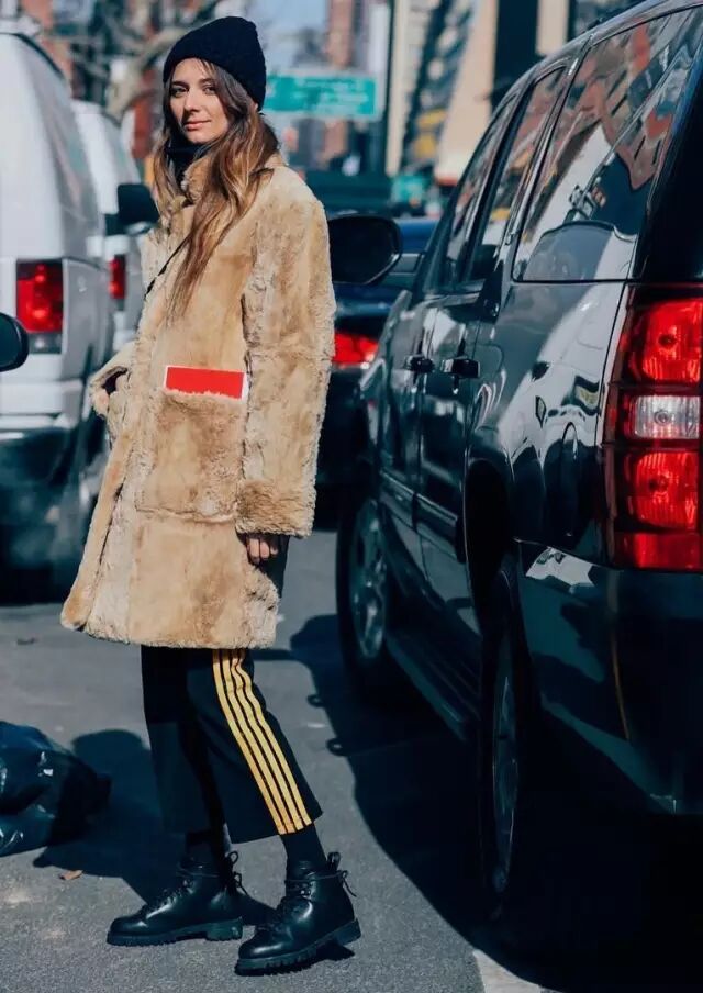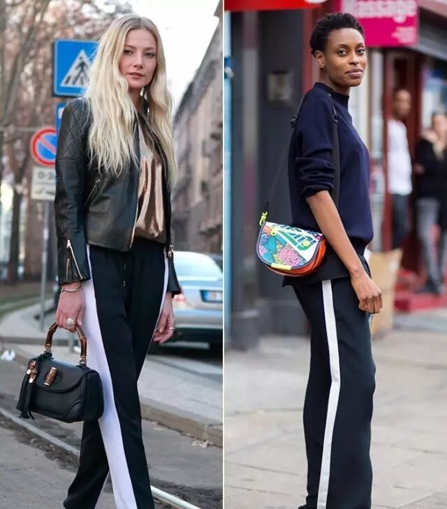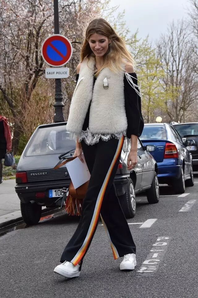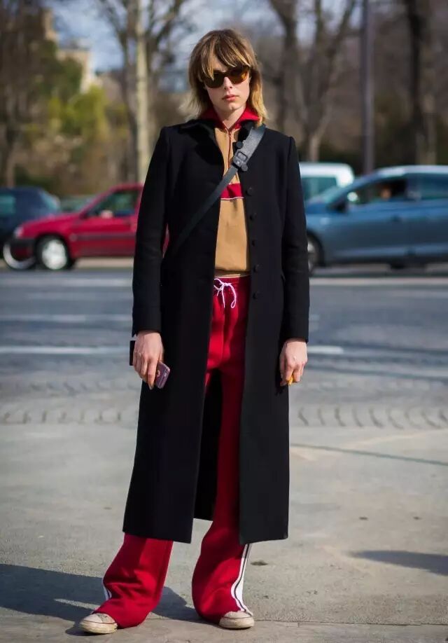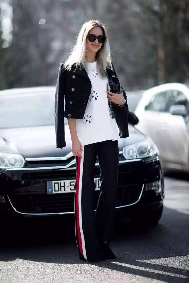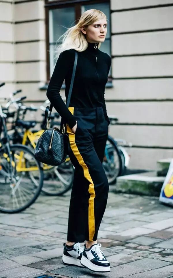 说了那么多“校服裤”的好处,并不意味着它百无禁忌。街拍中很常见的一种搭配就是“学院风”和“运动风”,看上去感觉像回到青葱岁月,年轻又有活力。▼