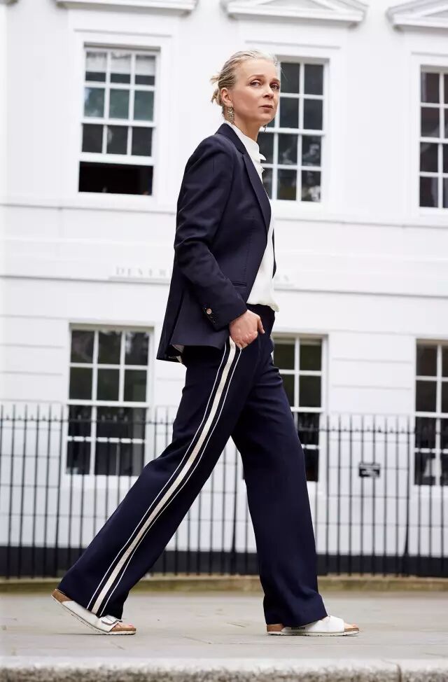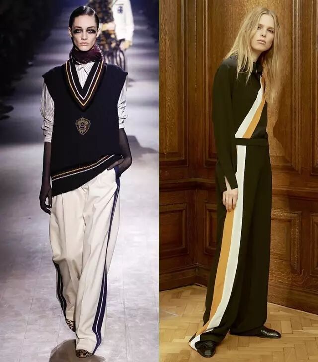 成套的侧条纹套装,我个人都觉得很考验人。Stella McCartney这款也很受欢迎,但不同的人穿上去效果还是差蛮远的。▼