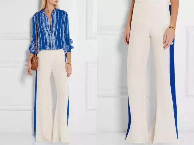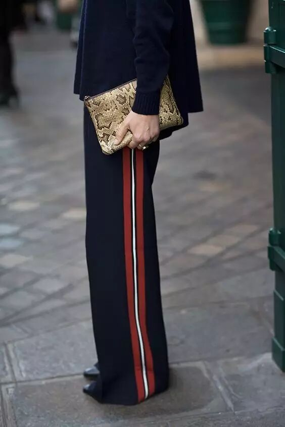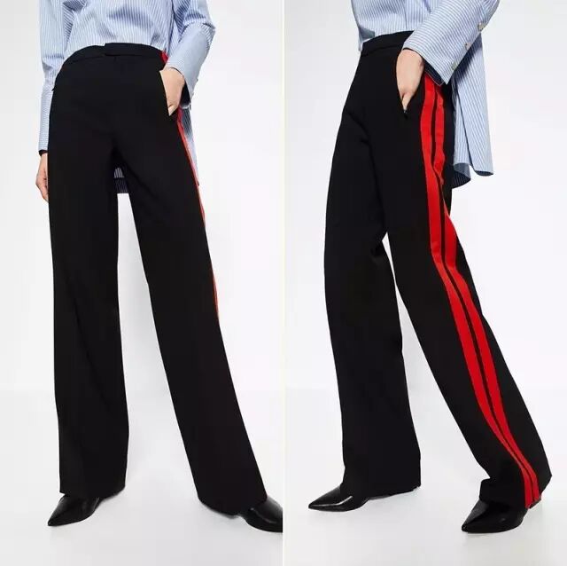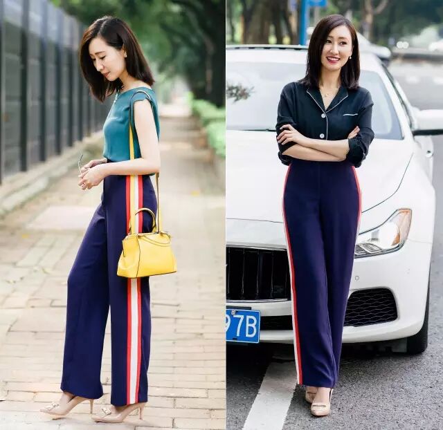 侧边条纹的裤子有很多种,但我最喜欢的就是上面那些阔腿裤的款式,也更推荐大家买这种。▼