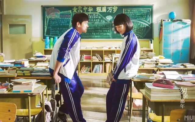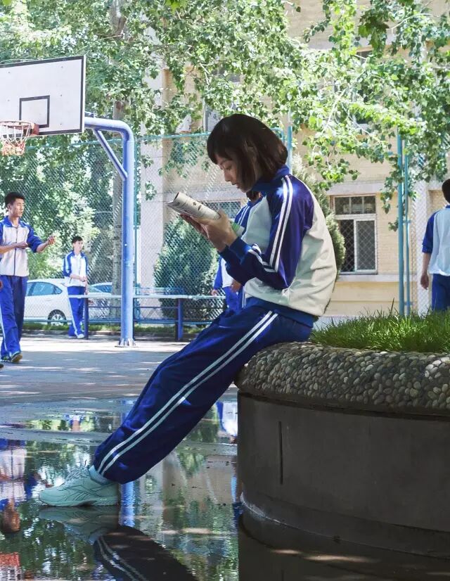 很多人中学校服就是电影《匆匆那年》里的这种,蓝裤子白条纹,满满的青春回忆。▼