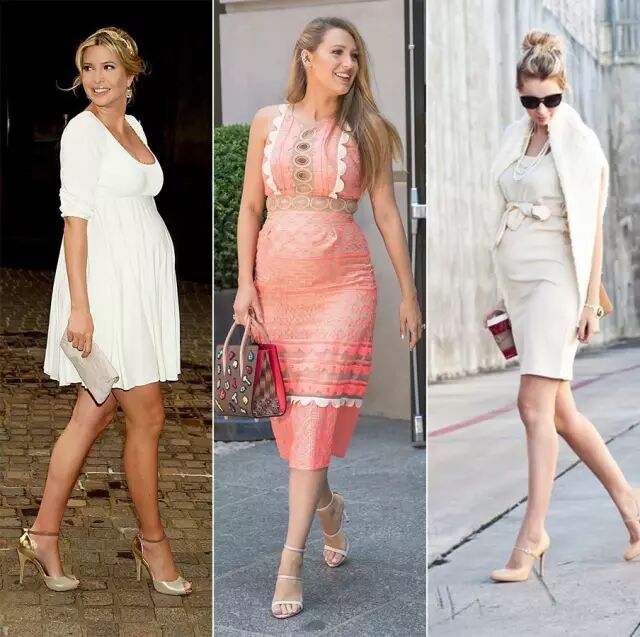 很多大着肚子的女明星在出席活动时会大胆地选择紧身裹身裙,大方展现自己在孕妇阶段独特的美。