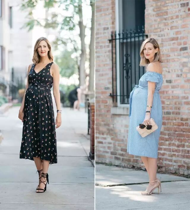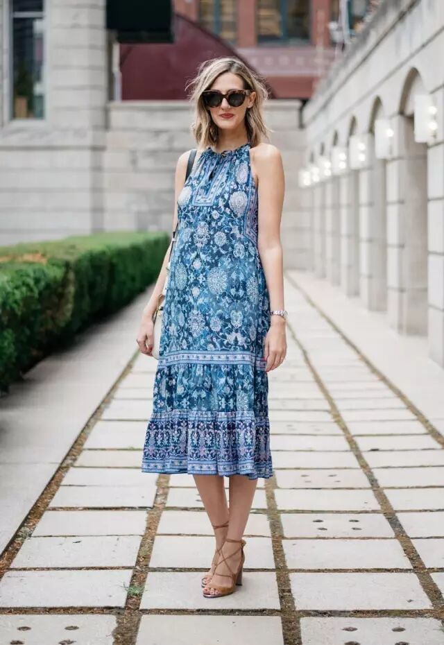 对于行动不便的孕妈来说,到小腿肚的长裙会更实穿也更有安全感,宽松的款式日常穿还会更舒服,因为腰线高搭配平底鞋也不会显矮。▼