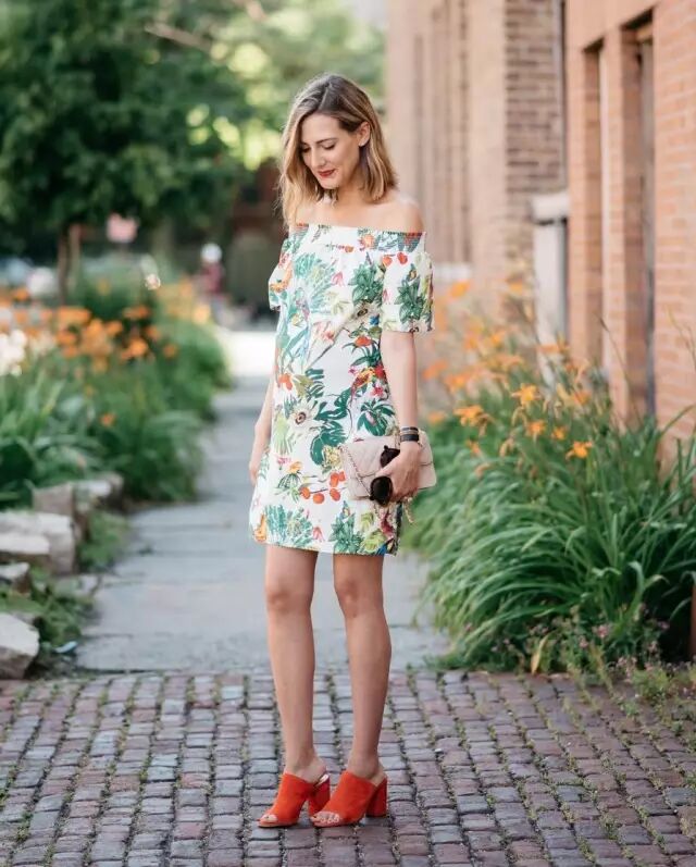 一字领吊带的设计可以露出肩膀,还比普通吊带裙多了几分设计感。姚晨最近的炫腹日记中就有穿。▼