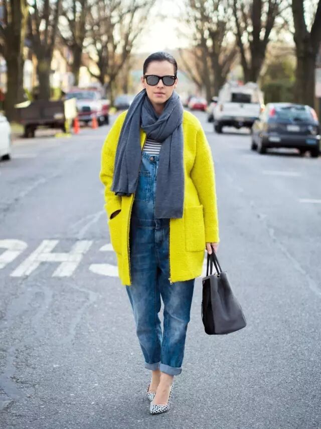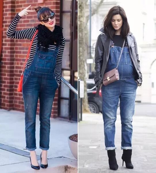 宽松的背带裤这两年挺流行的,大着肚子穿也有减龄效果。▼