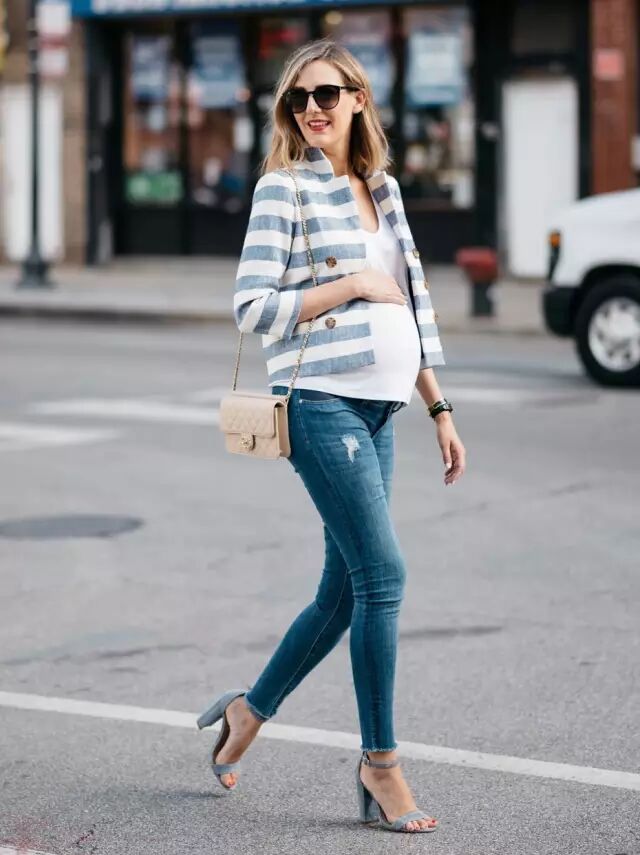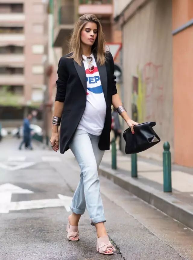 各种宽松但有型的上衣也是孕妈们的时髦法宝。比如以前都是扎进去穿的白衬衫,现在随便搭条牛仔裤也是好看的。很多孕妇牛仔裤都很好穿,导致没有上进心的崔斯坦生完后很长一段时间都不舍得脱下来。▼