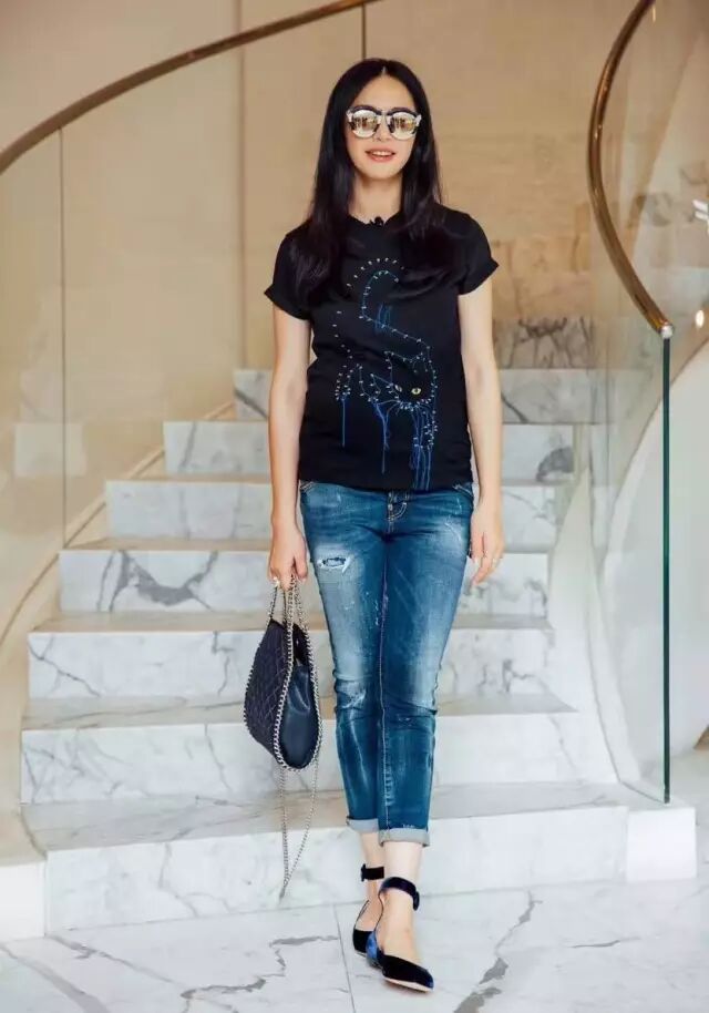 或者像大姚这样用宽松T恤配破洞牛仔裤。▼