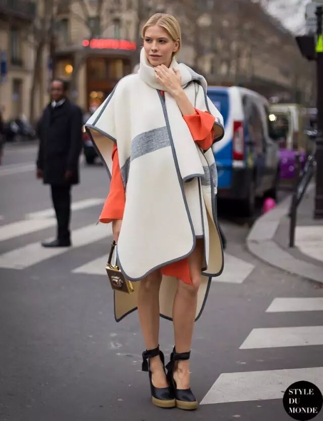 大廓形的斗篷也是孕妇藏肚子显时髦的一大法宝。▼