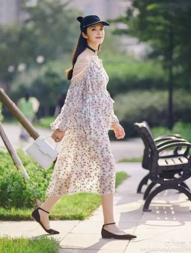 在孕相还不明显的时候,高腰大摆的裙子还能有效地遮住肚子。▼
