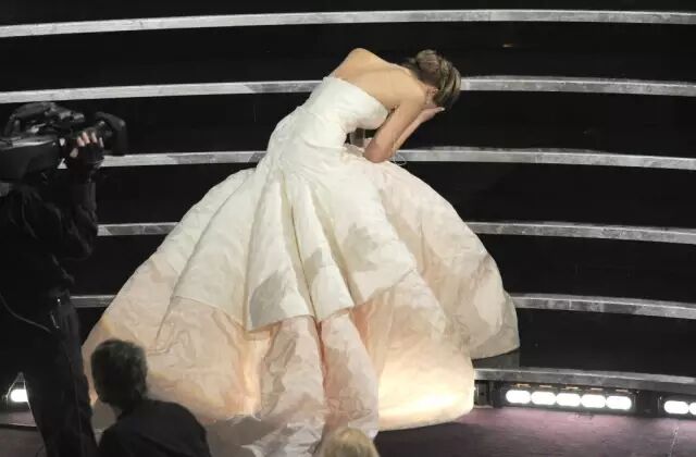 很多人都说表姐Jennifer Lawrence连摔倒的姿势都很优雅,可能是因为她的背挺直了吧~▼