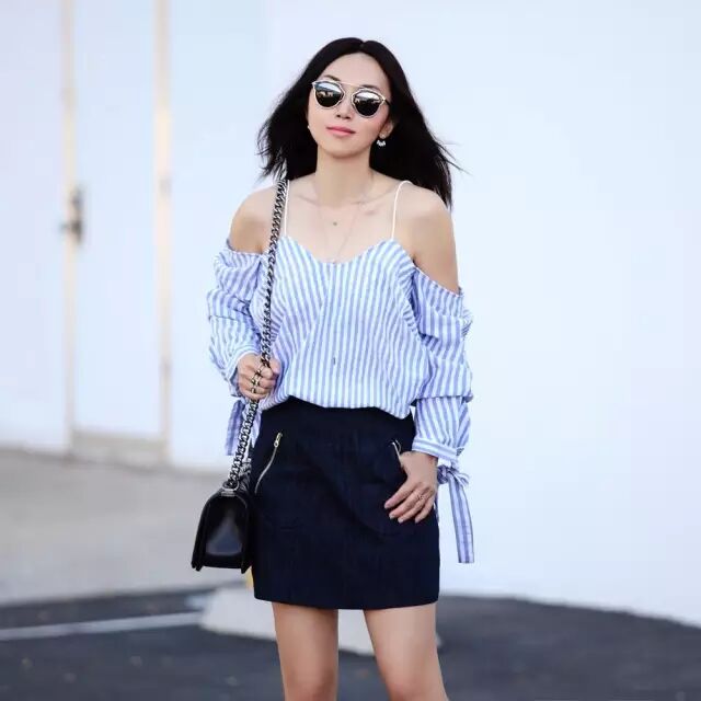 时尚博主Jane的这件吊带露肩衬衫也是它家的。▼