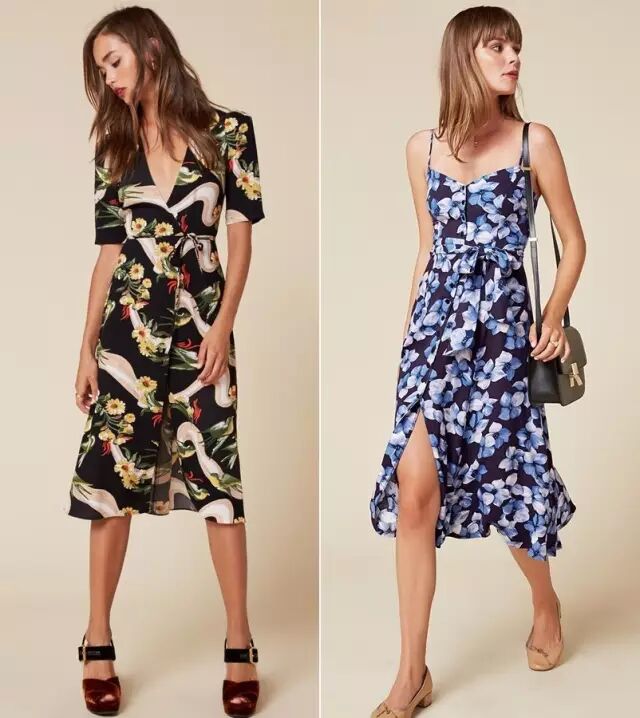 印花裙也是Reformation的王牌单品。复古小碎花中加入了现代感的大领口和开叉设计,时髦又轻盈。下面两条参考价:1456元。▼