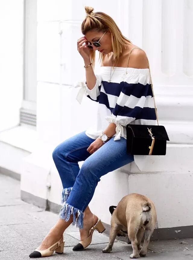 博主Aylin Koenig穿的这件条纹一字领也是爆款,434元。▼