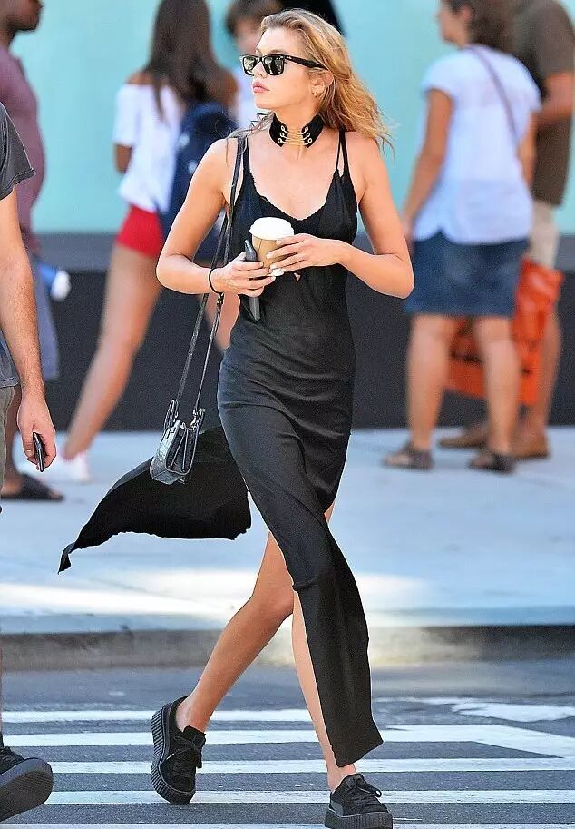 超模Stella Maxwell的这件黑色真丝吊带裙也很美,更贵一些,约5600元。▼