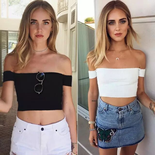 最爱爆款的Chiara当然不会放过,同款黑白两件都穿过。▼