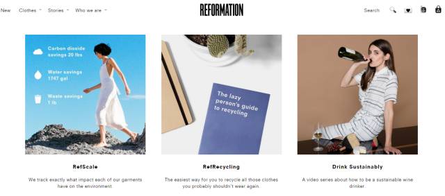 购买渠道:Reformation提倡绿化时尚,从选材到生产,都遵循极严格的环保标准。它家通常是在官网上发布新品,销售的主要途径也是线上购物平台,现下实体店不多。▼